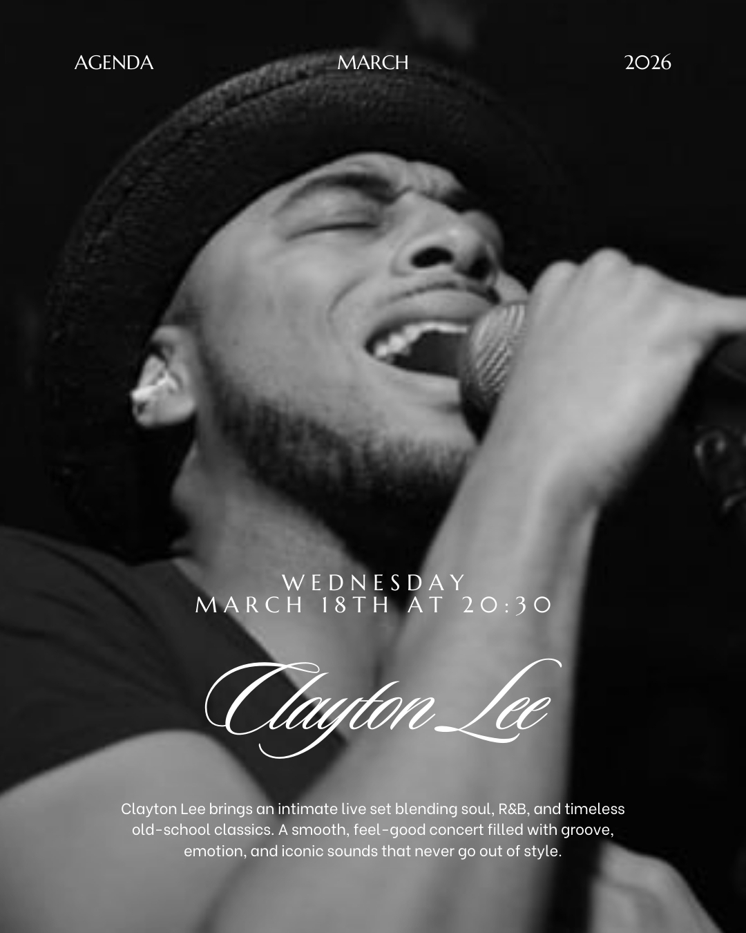 Join UK vocalist Clayton Campbell for an unforgettable live show. Blending soul, R&B, and old-school classics, he delivers a smooth, powerful performance full of emotion, style, and genuine audience connection. A must-see night for true music lovers.