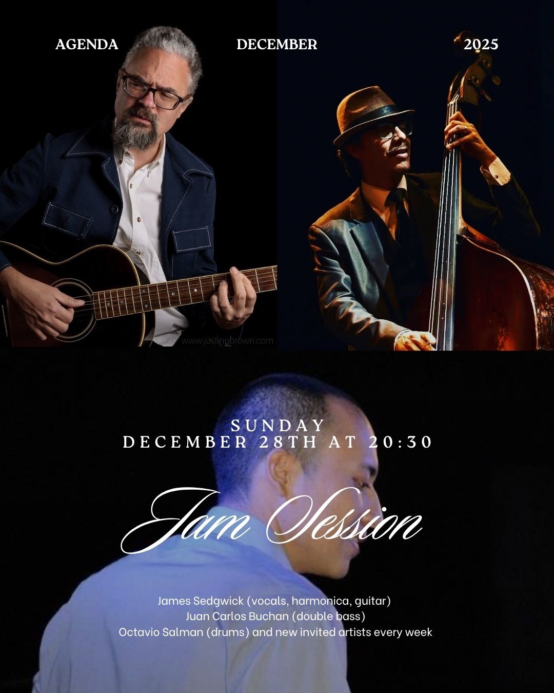 Sumérgete en la vibrante energía de una jam session llena de creatividad y maestría musical. Cada actuación del cuarteto ofrece una experiencia única, llevando el jazz a su máxima expresión con interpretaciones apasionadas y originales.