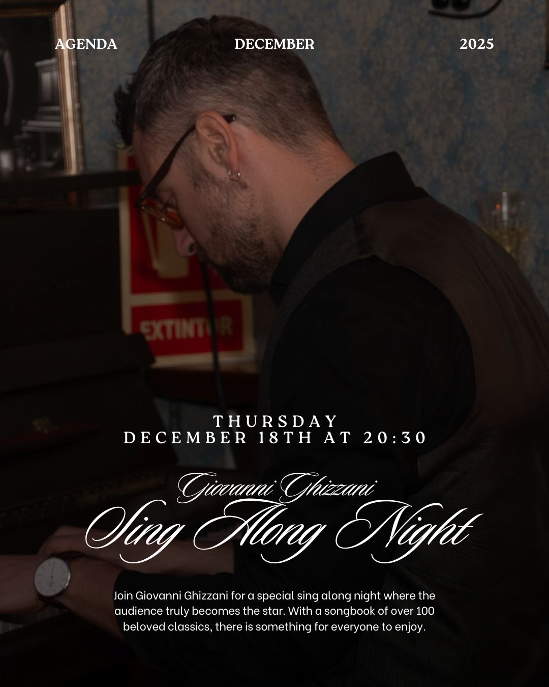 Únete a Giovanni Ghizzani en una noche especial para cantar en la que el público se convierte realmente en la estrella. Con un repertorio de más de 100 clásicos muy queridos, hay algo para que todos disfruten. Viaja a través de estándares del jazz como Autumn Leaves, Summertime y Fly Me to the Moon, déjate llevar por joyas de la bossa nova como The Girl from Ipanema y Wave, o revive éxitos atemporales como Stand by Me, Route 66 y At Last. Elige tu favorita, canta y comparte una velada llena de alegría, música y espíritu comunitario.
