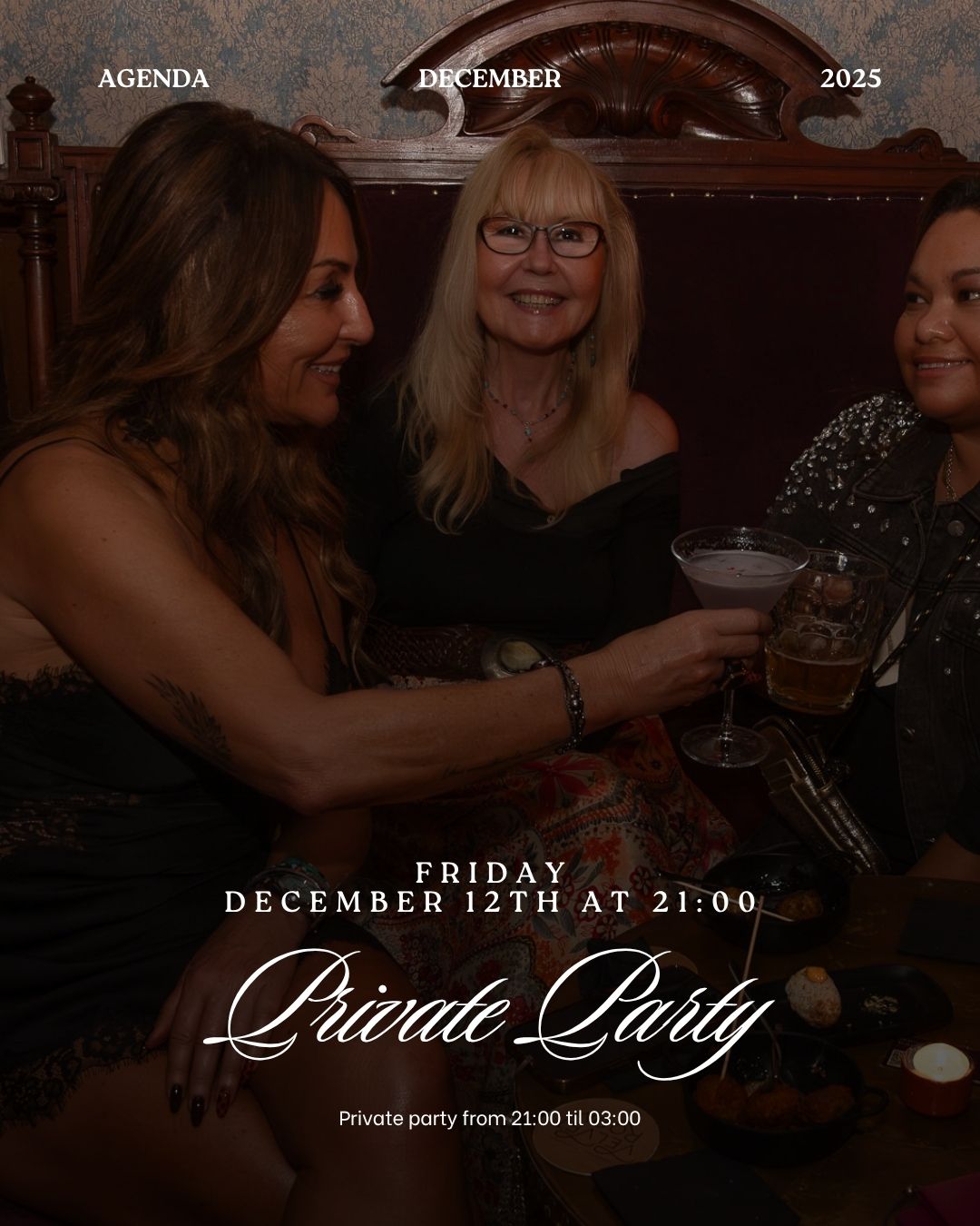 Private Party November 19, 2025 Start date: Friday 12 December 2025End date: Saturday 13 December 2025Time: 21:00 - 03:00English | EspañolPrivate Party from 21:00 – 03:00 – Fiesta Privada de 21:00 a 03:00 Share: Older Post Private Party Newer Post Closed For Holidays
