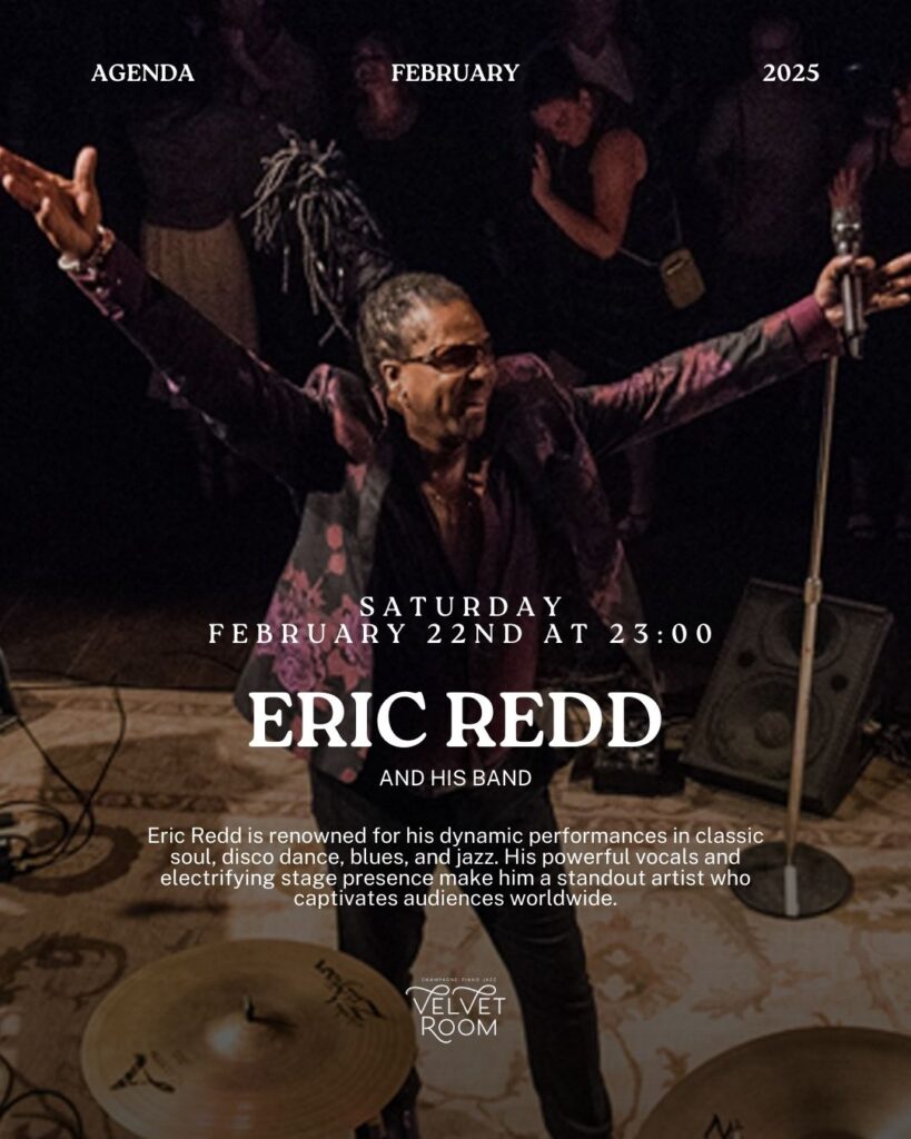 Saturday 22 February 202523:00EnglishEric Redd, with his vibrant energy and commanding voice, has a unique ability to captivate and uplift audiences. His performances are a blend of soulful intensity and infectious enthusiasm, leaving a lasting impression on all who witness his talent. Eric has a wide variety of musical influences, which he blends seamlessly into his performances, showcasing […]January 16, 2025 -