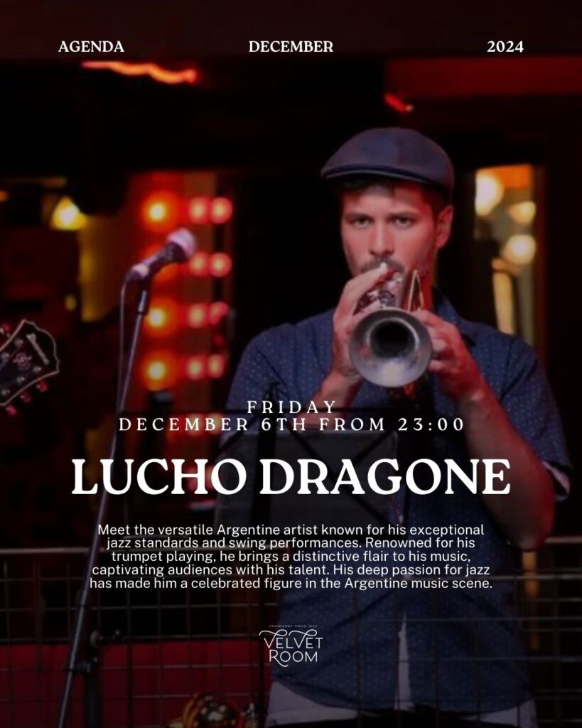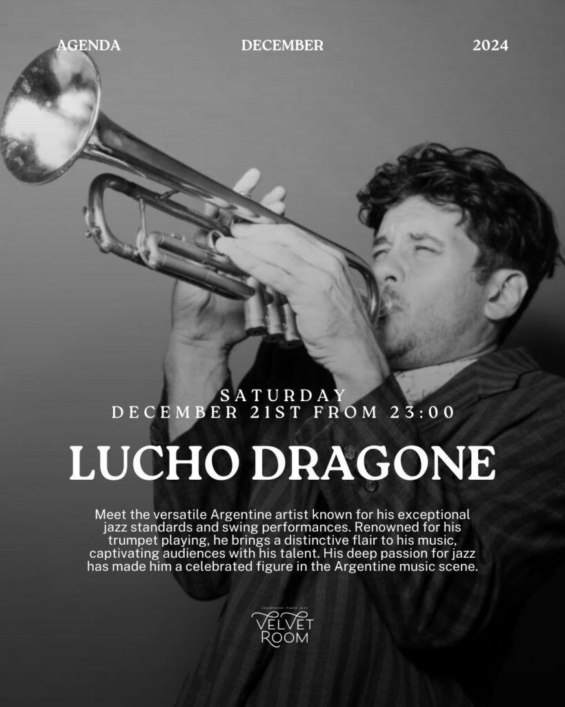 Thursday 12 December 202420:30EnglishMeet the versatile Argentinean artist known for his exceptional interpretations of jazz and swing standards. Known for his trumpet playing, he brings a distinctive touch to his music, captivating audiences with his talent. His deep passion for jazz has made him a celebrated figure in the Argentine music scene, never ceasing to push the boundaries […]November 18, 2024 -