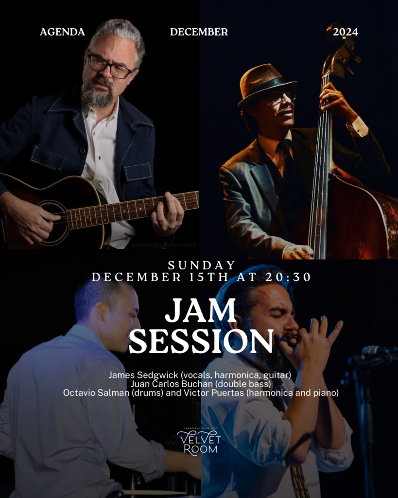 Wednesday 11 December 202420:30EnglishImmerse yourself in the vibrant energy of a jam session full of creativity and musical mastery. Each performance of the quartet offers a unique experience, bringing jazz to its maximum expression with passionate and original interpretations. If you are a jazz lover, don't miss our session starting at 20:30. We look forward to enjoying the […]November 18, 2024