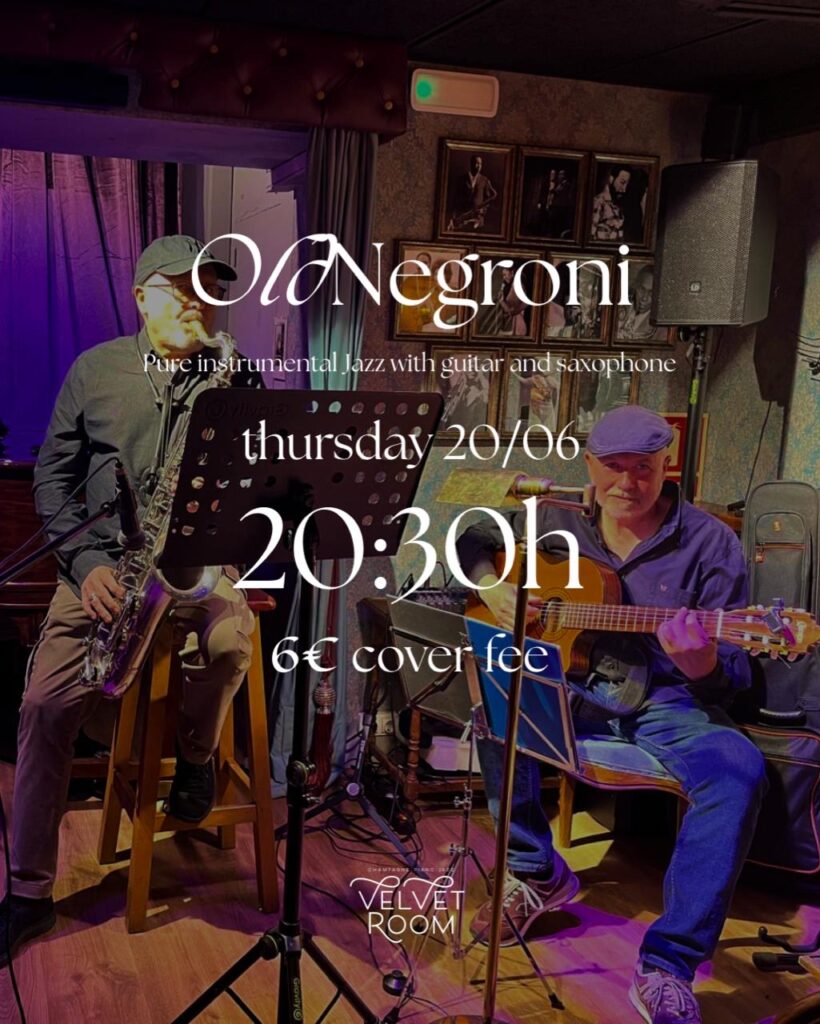 Thursday 20 June 202420:30EnglishAlbert Gamundi (tenor saxophone and soprano) and Bep Mir (self-taught guitarist), both from Catalonia, make up Old Negroni Duet (Originally part of a Quartet). Together, they perform a vast repertoire of slow-tempo and ambience music that goes from Bossa Nova (including that of Tom Jobim, Vinicius de Moraes, Baden Powell amongst others) to slow pop […]July 10, 2023 -