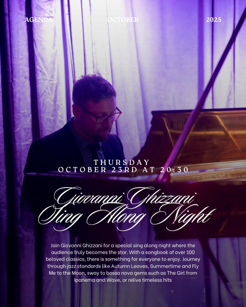 Thursday 23 October 202520:30EspañolÚnete a Giovanni Ghizzani en una noche especial para cantar en la que el público se convierte realmente en la estrella. Con un repertorio de más de 100 clásicos muy queridos, hay algo para que todos disfruten. Viaja a través de estándares del jazz como Autumn Leaves, Summertime y Fly Me to the Moon, déjate […]September 22, 2025 -
